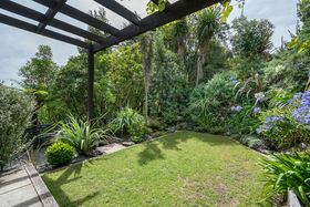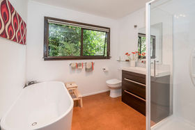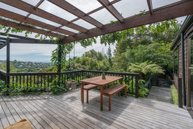 Listen to the bellbirds and relax in your private terraced 735m2 gardens and decks surrounded by leafy native trees and plants and feast your eyes on the superb views across the city and plains to the mountains. The home is bathed in all day sun, sheltered from the easterly and above the frost-line. Entertain on the deck and patios or escape along the pathway that meanders through the trees. All day sun heats the living and surrounding decks. We've found your own paradise!